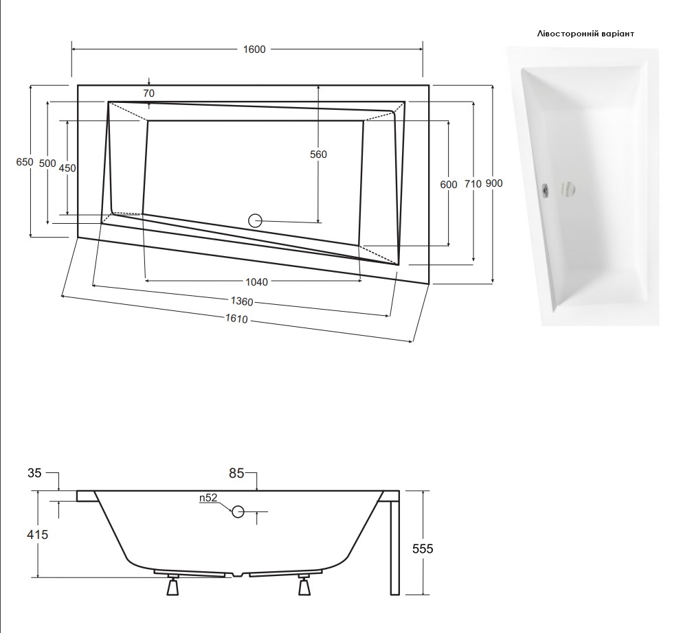 Відгуки про "Ванна акрилова INTIMA 160x90 Ліва (соло) без ніг"