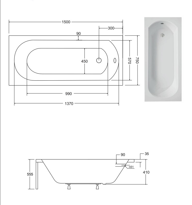 Матеріал: Санітарний акрил. Об'єм: 165 л.