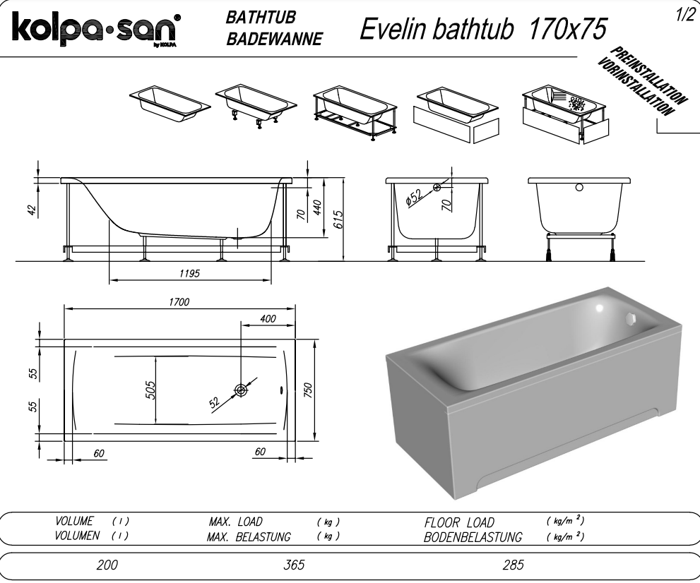 Відгуки про "Ванна акрилова Kolpa San Evelin 170x75"