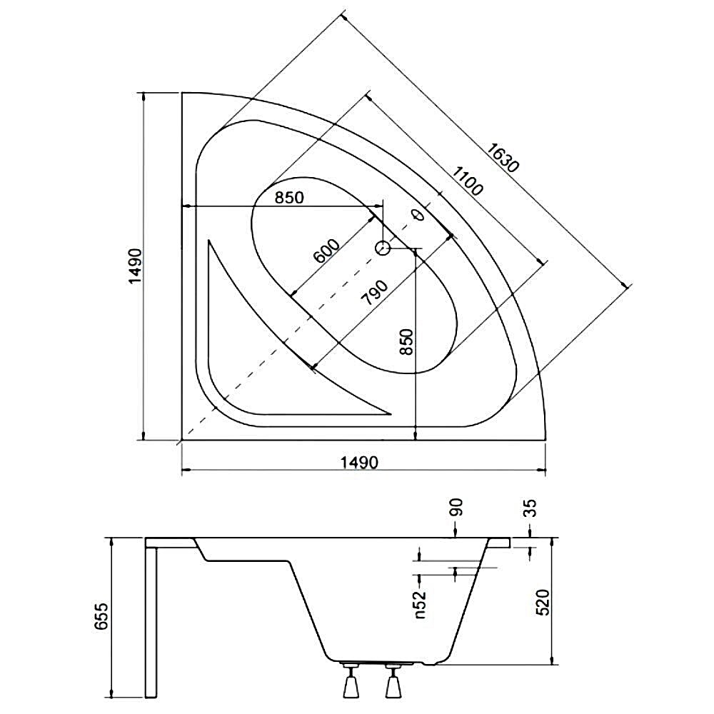 Ванна акрилова LUKSJA 148х148 (соло) без ніг