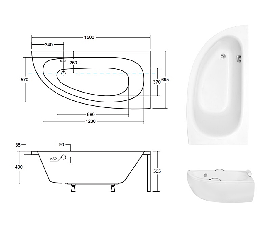 Ванна додатково комплектується ніжками та обудовою.
