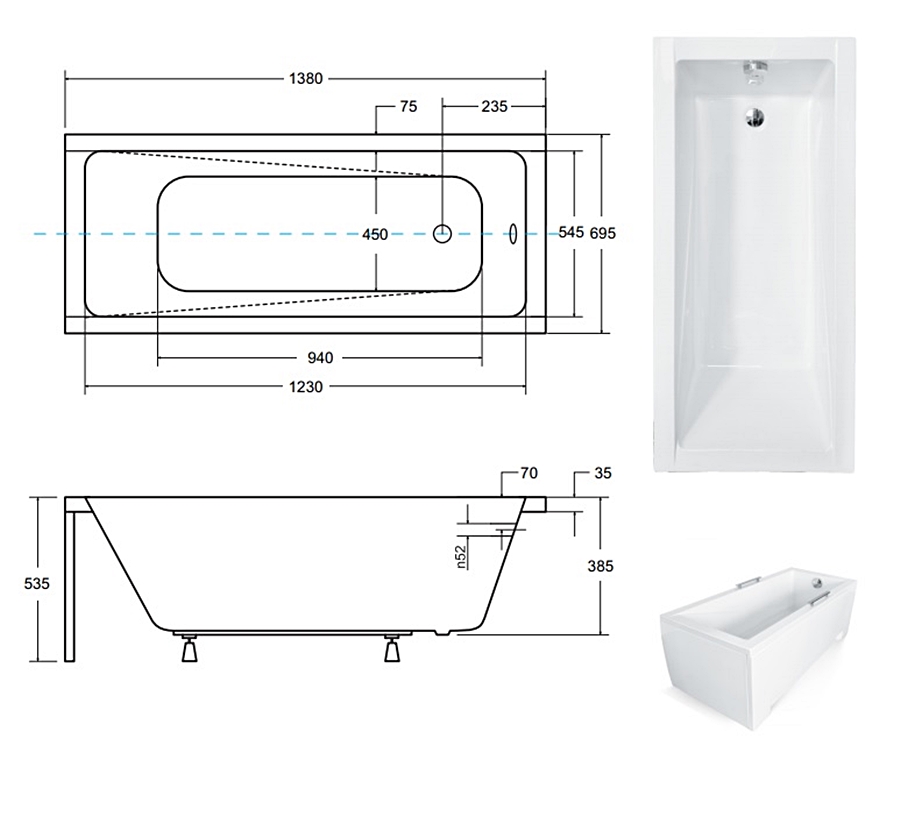 Ванна акрилова MODERN 140x70 (соло) без ніг