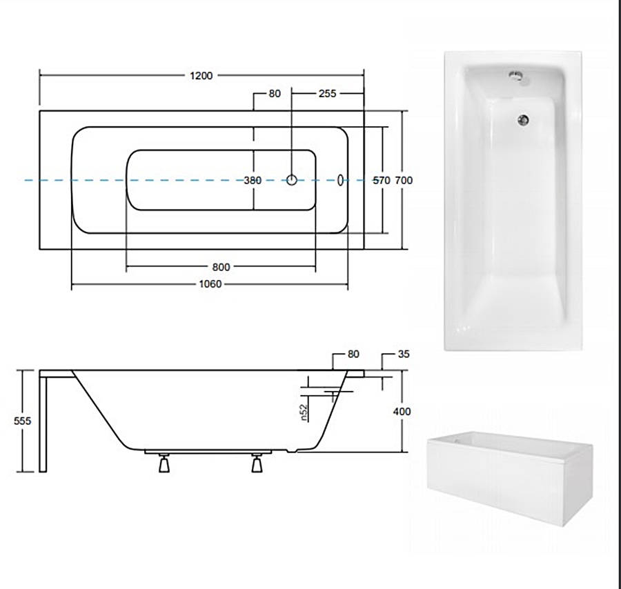 Товщина акрилу на бортах: 4-5 мм. Ванна додатково комплектується ніжками.