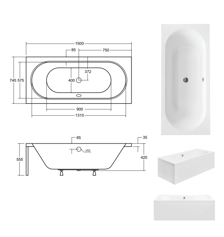 Ванна акрилова VITAE 150х75 (соло) без ніг