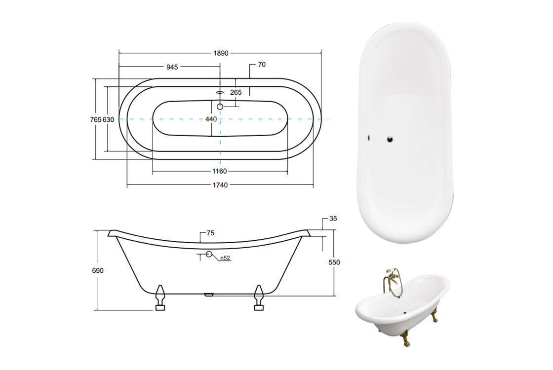 Відгуки про "Ванна AMELIA ретро 190х77 чорна зовні біла всередині з ногами білими"