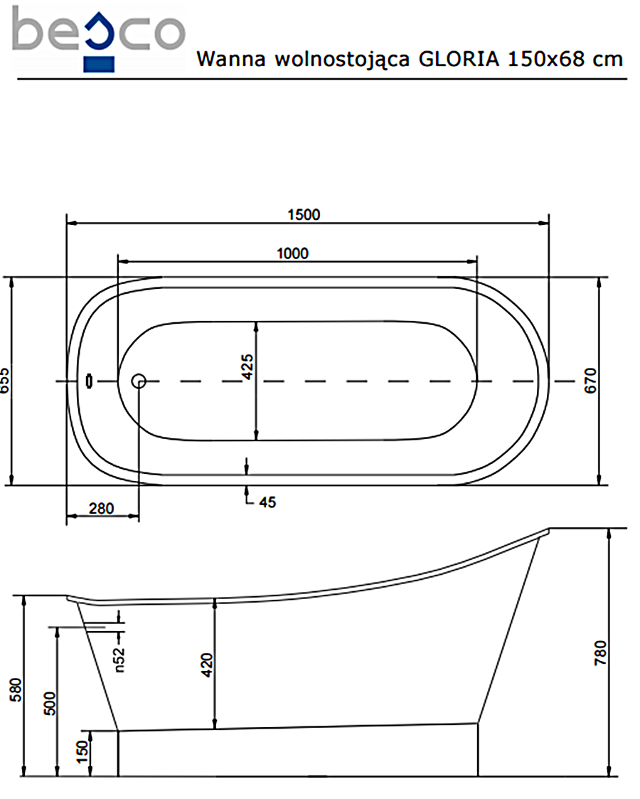 Відгуки про "Ванна GLORIA ретро 150х66 з сифоном клік-клак"