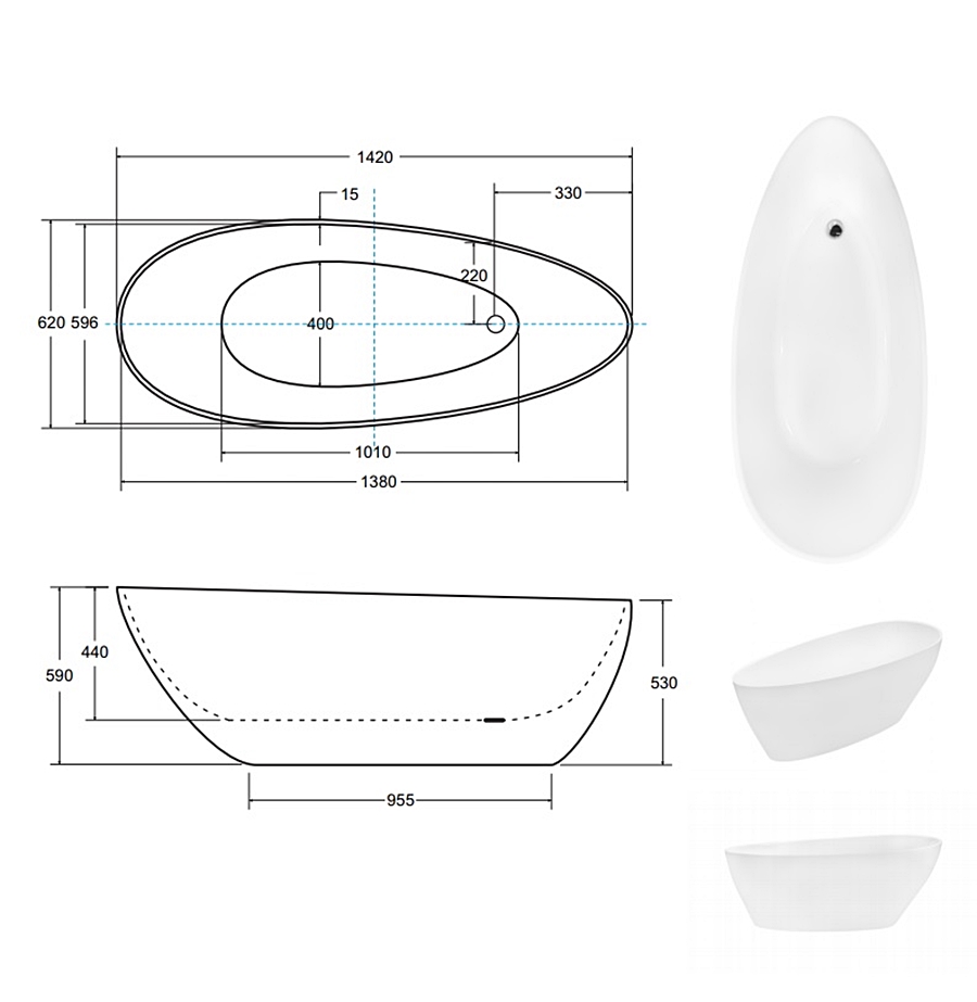 Ванна GOYA XS ретро 142x62 з сифоном клік-клак