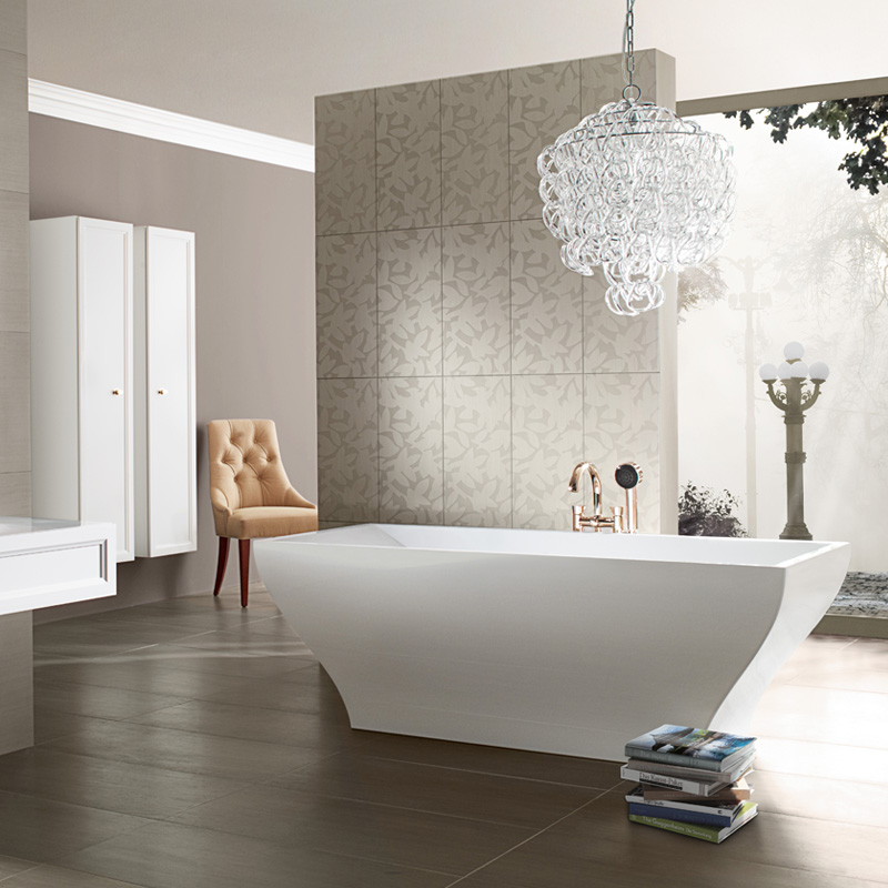 Він являє собою продуману комбінацію кварцу і сантехнічного акрилу. Має чудову теплоізоляцію для тривалого підтримання тепла в ванні і протиковзку поверхню (протестовано TUV-LGA).