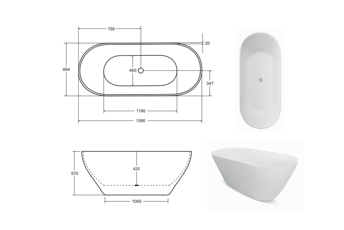 Ванна MOYA ретро білого кольору матова, виготовлена з мінерального лиття Mineral DuraBe. Комплектується сифоном клік-клак в білому кольорі.