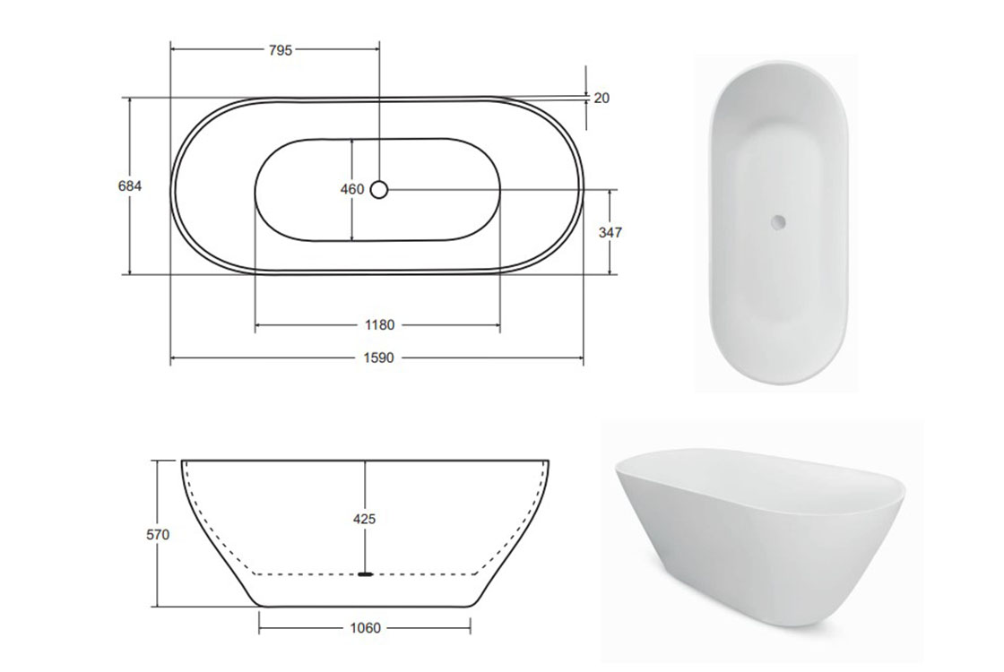 Ванна MOYA ретро виготовлена з мінерального лиття Mineral DuraBe. Зовнішня частина ванни оздоблена в чорному матовому кольорі, внутрішня біла глянцева. Комплектується сифоном клік-клак в кольорі хром.