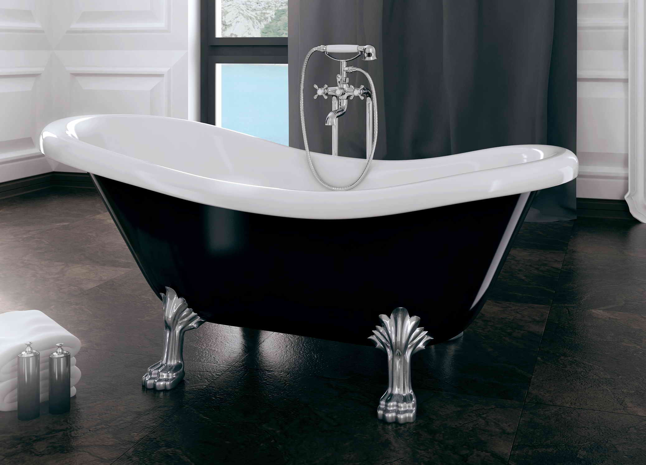 Відгуки про "Ванна OTYLIA ретро 170х77 чорна зовні біла всередині з ногами хром"