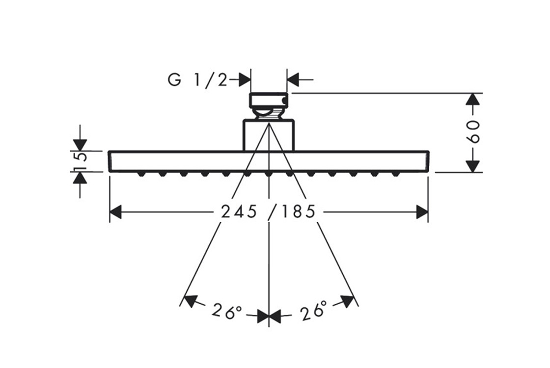 Axor розмір душової лійки: 245х185 мм,тип розпилення: Дощ,кульовий шарнір: верхній душ регулюється кутом нахилу,матеріал розпилювального диска: метал,максимальна витрата при 3 барах: 7,4 л/хв,мінімальний тиск потоку: 0,8 бар,функція від: 5,6 л/хв,верхній душ знімається для очищення,монтаж: стеля або стіна,з'єднувальна різьба G ½,підходить для проточних водонагрівачів,технологія EcoSmart дозволяє заощаджувати до 60% витрат на воду та енергію без втрати комфорту та, відповідно, економити цінні ресурси.
