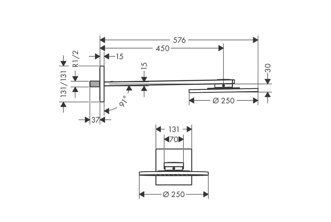 Axor складається з: верхнього душу, тримачарозмір душової лійки: 250 мм,тип розпилення: PowderRain,динамічні розпилювальні форсунки висуваються під час використання,матеріал розпилювального диска: метал,довжина душового кронштейна 450 мм,максимальна витрата при 3 барах: 18,1 л/хв,витрата розпилювача PowderRain (при 3 бар): 18,1 л/хв,функція від: 12,5 л/хв,мінімальний тиск потоку: 1,5 бар,верхній душ знімається для очищення,монтаж: настінний,з'єднувальна різьба G ½,приєднувальний розмір: DN15,підходить для проточних водонагрівачів.