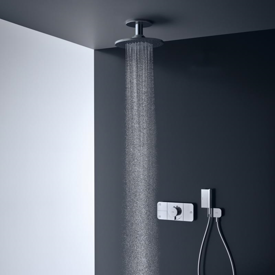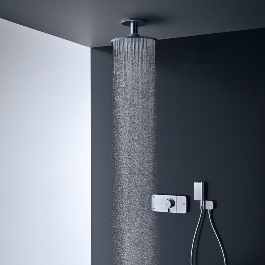 складається з: верхнього душа, стельового тримача,розмір душової лійки: 300 мм,тип розпилення: PowderRain,матеріал розпилювального диска: метал, з'єднувача для стелі: латунь,довжина підключення стелі: 100 мм,максимальна витрата води при 3 барах: 19 л/хв.необхідне додаткове обладнання: прихована частина для монтажу верхнього душу з під'єднанням (арт.26434180) (не входить в комплект).
