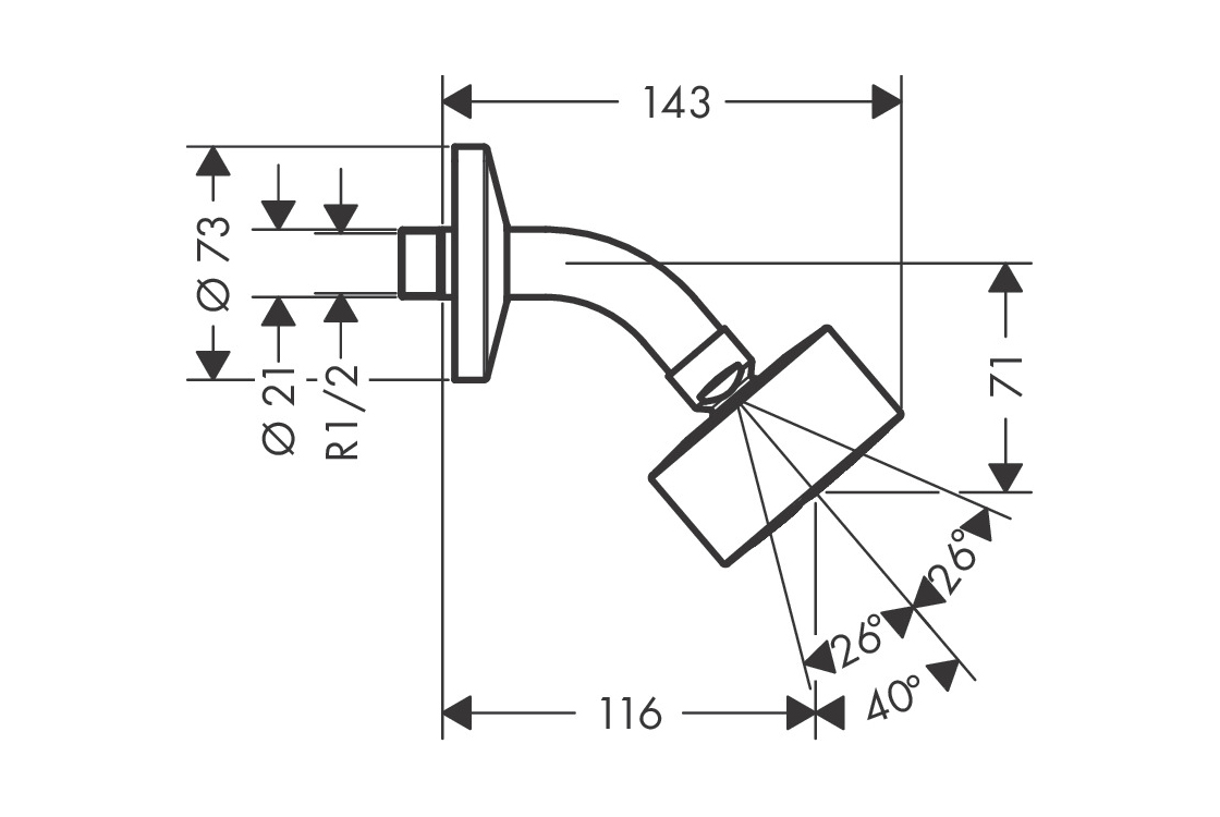 Axor складається з: верхнього душу, стінового кронштейна,розмір душової лійки: 73 мм,тип розпилення: PowderRain,виступ 116 мм,кульовий шарнір: верхній душ регулюється кутом нахилу,матеріал розпилювального диска: метал,довжина плеча душу 85 мм,максимальна витрата води при 3 барах: 8,7 л/хв.