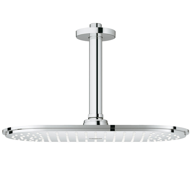 Верхній душ Grohe Rainshower Veris 300 (26069000) з душовим кронштейном для стельового монтажу.