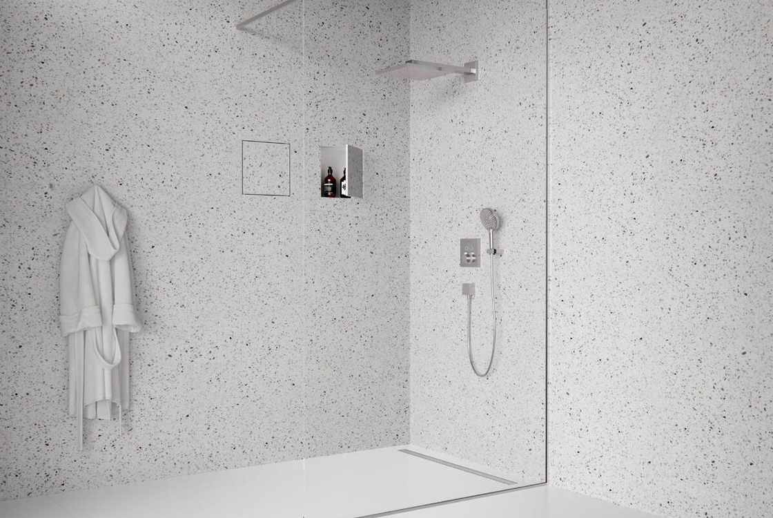 складається з: фінішного комплекту душового зливу, монтажного комплекту, Dryphon, ущільнювальної мембрани, інструменту для зняття решітки,тип монтажу: вільно в підлогу,безкаркасний дизайн,легка для очищення поверхня,регулюється по висоті на 10 мм,товщина плитки: до 18 мм,пропускна здатність до 49 л/хв,тип ущільнювача запаху: механічний,Dryphon забезпечує безводну сифонну систему,монтаж на стяжку.