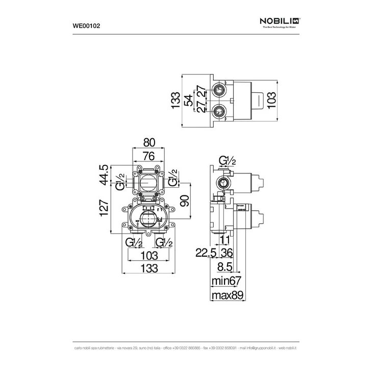 Вбудована частина змішувача на 2 виходи з термостатом (WE00102), Nobili