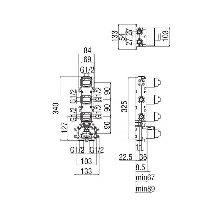 Внутр. частина вбудовуваного змішувача на 3 виходи NOBILI WE00103 з термостатом Nobili