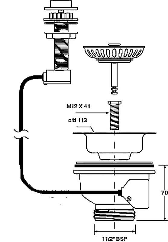 Злив 1.1 / 2 "х113мм з нержавіючої сталі + автоматичний корок.