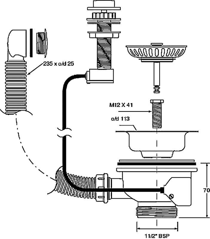 Злив для кухонної мийки-автомат з круглим переливом PUFS113-CP-25 11/2