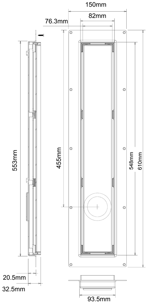 Злив у підлогу ПРЯМОКУТНИЙ 600 мм CD600-B-NT + сифон CD-HC26-65