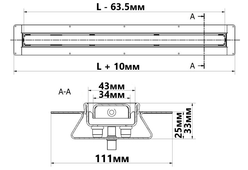 Трап підлоговий лінійний Omega Slim довжина 900мм, комплектується ніжками та ізоляцйною мембраною.