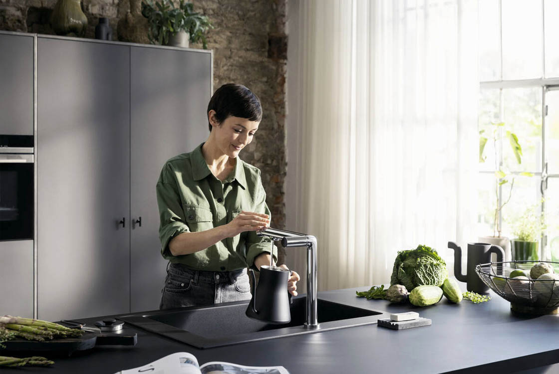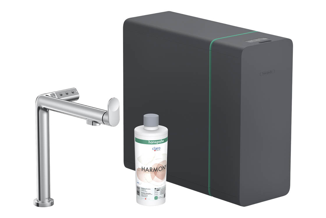 складається з: одноважільного кухонного змішувача, насадки з фільтром, картриджа для мінералізації Harmony з фільтром, SodaBaseв комплектацію не входить: балон CO2,l-вилив,комфортзона 240,діапазон повороту регулюється у 2 етапи 60° або 110°,ламінарний спрей,підключення пристрою DN20максимальна витрата при 3 бар: 6,5 л/хв,керамічний картридж,з'єднання G ⅜,підходить для безперервних проточних водонагрівачів,вбудований зворотний клапан,отвір під змішувач Ø 35 мм,охолоджена питна вода з роздільною подачею для фільтрованої та нефільтрованої води,вибір за допомогою кнопок на носику негазованої, середньогазованої та газованої води,контроль і моніторинг даних про споживання та push-повідомлення про низьку потужність фільтра або CO2 через додаток hansgrohe home,об'єм фільтра: 300 л,холодопродуктивність: 7 л/год охолодженої води,споживана потужність: 240 Вт (вихід води), 180 Вт (фаза охолодження), 3 Вт (режим очікування),живлення: 230 В ±10 %,максимальна кількість забору (охолоджена/газована вода): 2 л/хв.в комплектацію не входить: балон CO2.