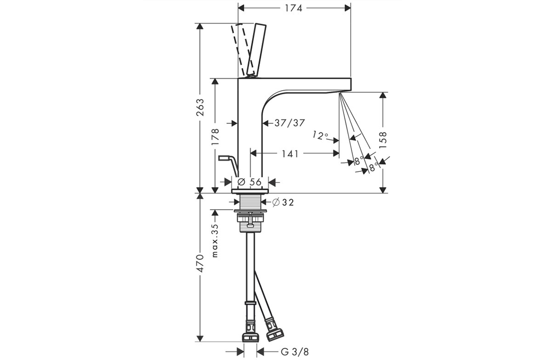 складається з: одноважільного змішувача для умивальника, зливного комплекту pop-up,ComfortZone 160,проекція: 141 мм,висота носика: 158 мм,тип розпилення: ламінарне розпилення,поворотний розпилювач,максимальна витрата води при 3 барах: 5 л/хв.