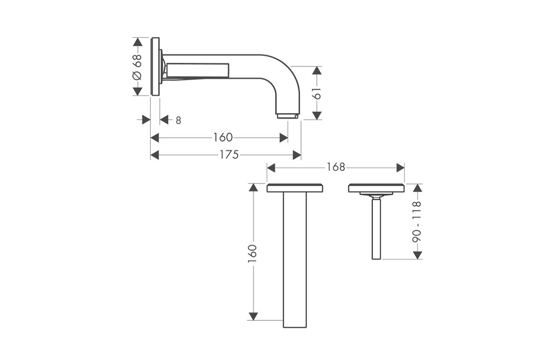 складається з: настінного одноважільного змішувача для умивальника прихованого монтажу, зливного комплектупроекція: 160 мм,тип спрею: звичайний,максимальна витрата при 3 барах: 5 л/хв,керамічний картридж,підходить для безперервних проточних водонагрівачів,тип підключення: базовий комплект,приєднувальний розмір: DN15,ручка може розташовуватися праворуч або ліворуч, в залежності від базового комплекту установки,необхідне додаткове обладнання: прихована частина для змішувача зі стіни (арт.13623180) (не входить в комплект).
