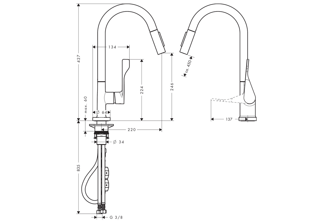 Відгуки про "Змішувач Axor Citterio 250 2jet для кухні з витяжним виливом (39835000) Chrome"