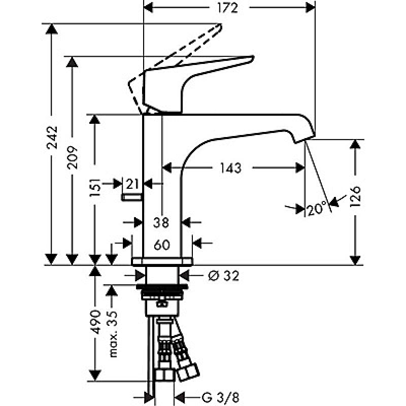 Змішувач Axor Citterio E 125 для умивальника, ручка Lever хром 36110000
