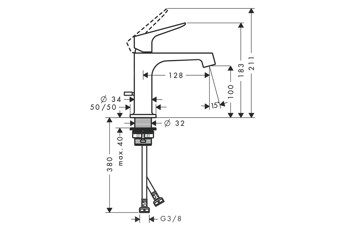 складається з: одноважільного змішувача для умивальника, зливного комплекту pop-upComfortZone 100проекція: 128 ммвисота носика: 100 ммваріант ручки: важільна ручкатип спрею: звичайний спреймаксимальна витрата при 3 барах: 5 л/хвкерамічний картриджрегулюється обмеження температурипідходить для безперервних проточних водонагрівачіввисувний донний клапан G 1¼тип з'єднання: з'єднання G ⅜приєднувальний розмір: DN15
