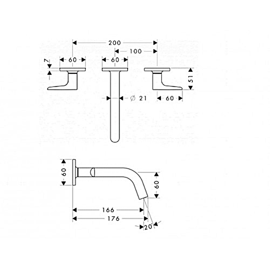 Змішувач Axor Citterio M для умивальника зі стіни на 3 отвори, вилив 166 мм, хром 34313000