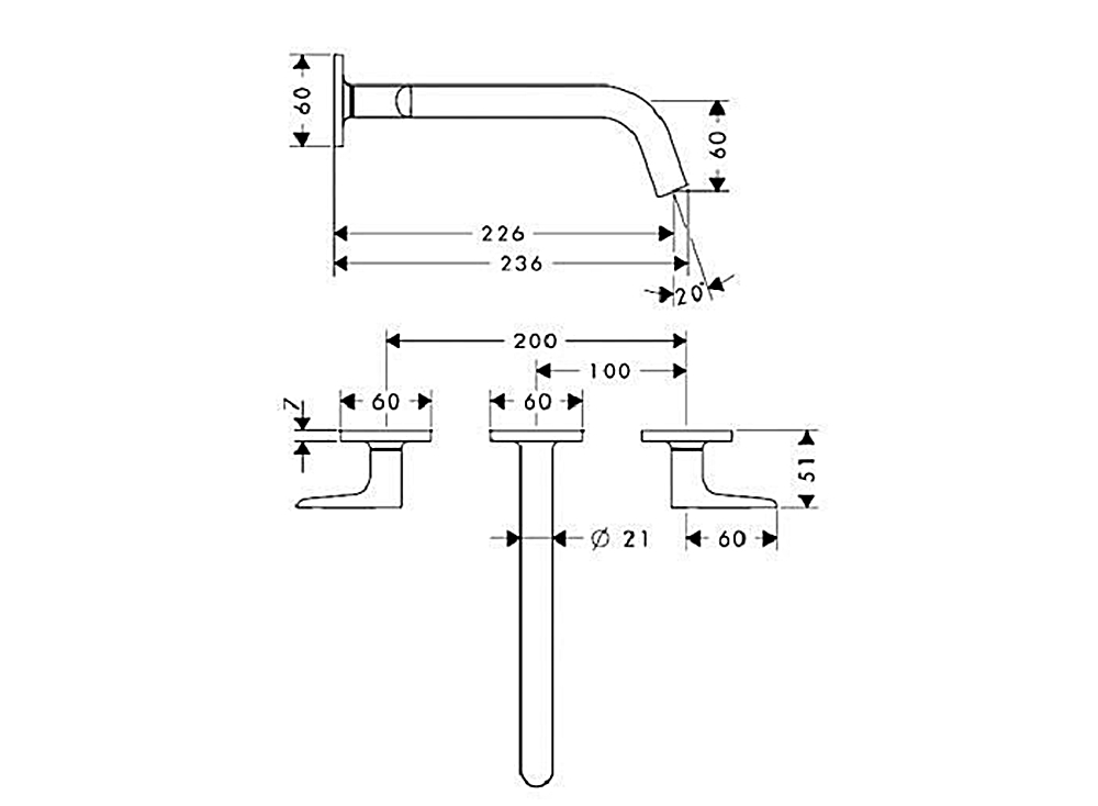Змішувач Axor Citterio M для умивальника зі стіни на 3 отвори, вилив 226 мм, хром 34315000