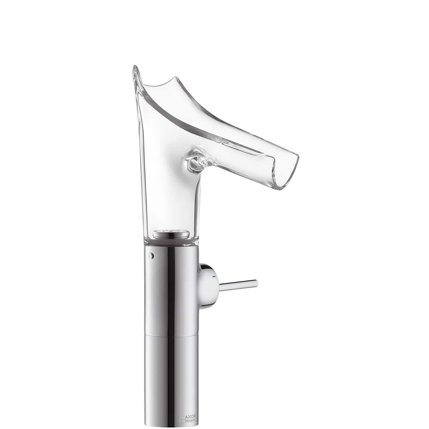Вода може бути неймовірно красивою, якщо надати їй правильну форму. Змішувач "Axor Starck V 220 12117000" формує струмінь води у легкий вир і при цьому дозволяє милуватися цим дивом природи, адже вилив виготовлений з кришталю і є повністю прозорим. Прозора кришталева колба повністю відкриває процес формуванну виру. Вона легко знімається, тому її можна мити у посудомийній машині. Запобіжна функція змішувача повністю перекриває подачу води, якщо корпус демонтований. А для вашої зручності ручка може розміщуватися ліворуч чи праворуч відповідно до ваших вподобань. Хоч змішувач для раковини і не має аератора, його витрати води становлять 4 літри за хвилину, завдяки спеціальному обмежувачу потоку.Серія "Axor Starck V" - це уніальна колекція змішувачів, яка зробила ванну кімнату місцем для відпочинку. Вона перенесла у ванну кімнату елементи вітальні з гаронією між водою та людиною.