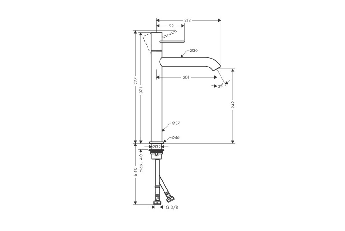 складається з: одноважільного змішувача для раковини, зливного комплекту,ComfortZone 250,проекція: 201 мм,висота носика: 249 мм,важільна ручка ув игляді петлі,тип спрею: звичайний спрей,максимальна витрата при 3 барах: 5 л/хв,керамічний картридж,регулюється обмеження температури,підходить для безперервних проточних водонагрівачів,тип з'єднання: G ⅜,приєднувальний розмір: DN15.