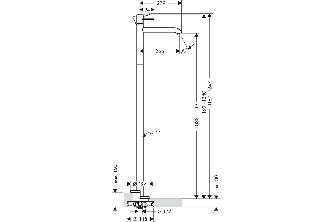 проекція: 266 мм,тип спрею: звичайний спрей,максимальна витрата при 3 барах: 5 л/хвкерамічний картридж,необхідне додаткове обладнання: прихована частина для змішувача: підлоговий монтаж (арт.10452180) (не входить в комплект).