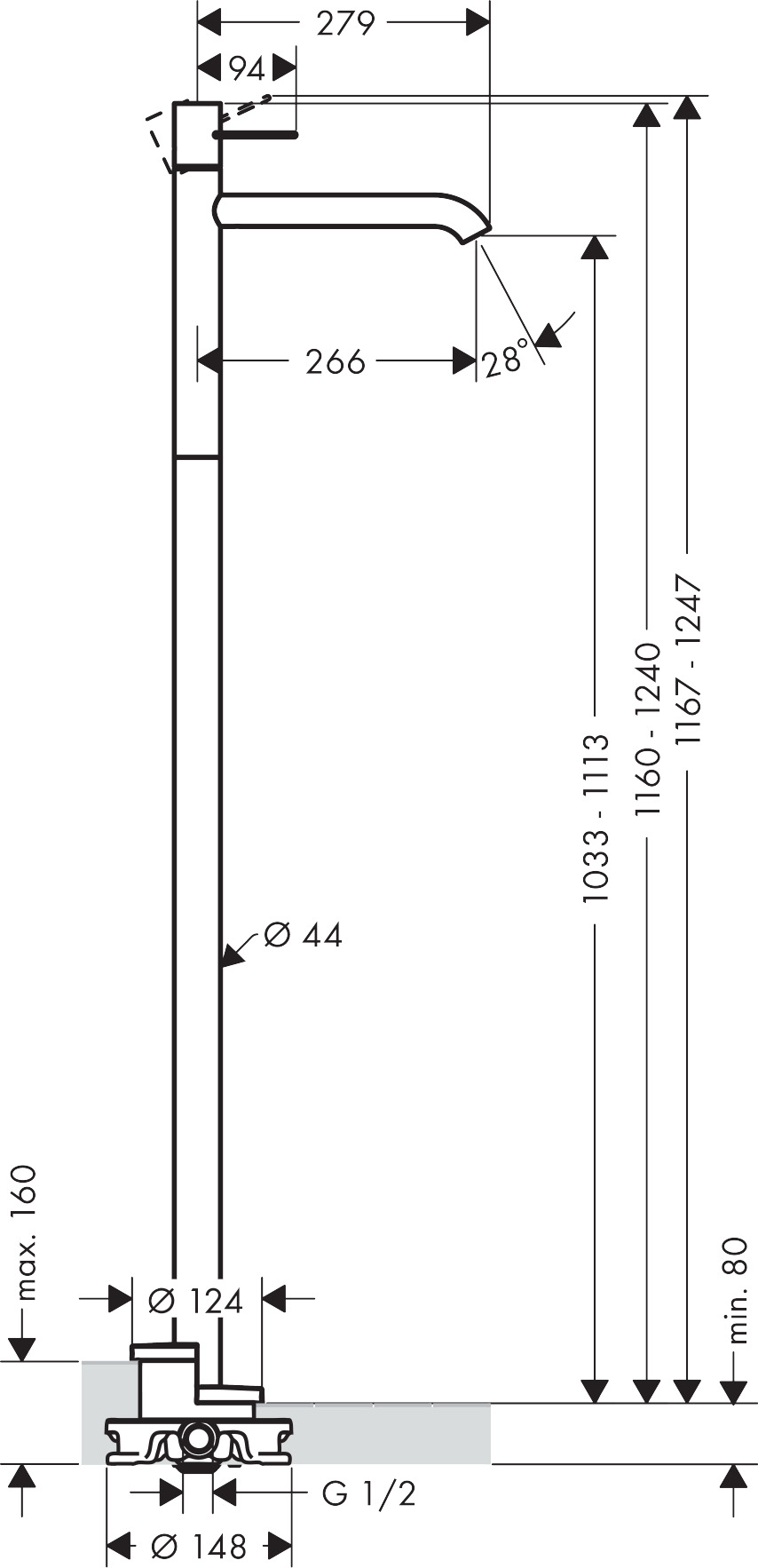 проекція: 266 мм,тип спрею: звичайний спрей,максимальна витрата при 3 барах: 5 л/хвкерамічний картридж,необхідне додаткове обладнання: прихована частина для змішувача: підлоговий монтаж (арт.10452180) (не входить в комплект).