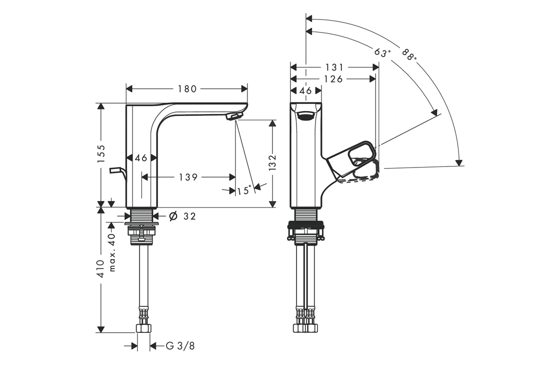 складається з: одноважільного змішувача для умивальника, зливного комплектуComfortZone 130,висота носика: 132 мм,варіант ручки: плоска ручка,тип спрею: звичайний спрей,максимальна витрата при 3 барах: 5 л/хв,керамічний картридж
