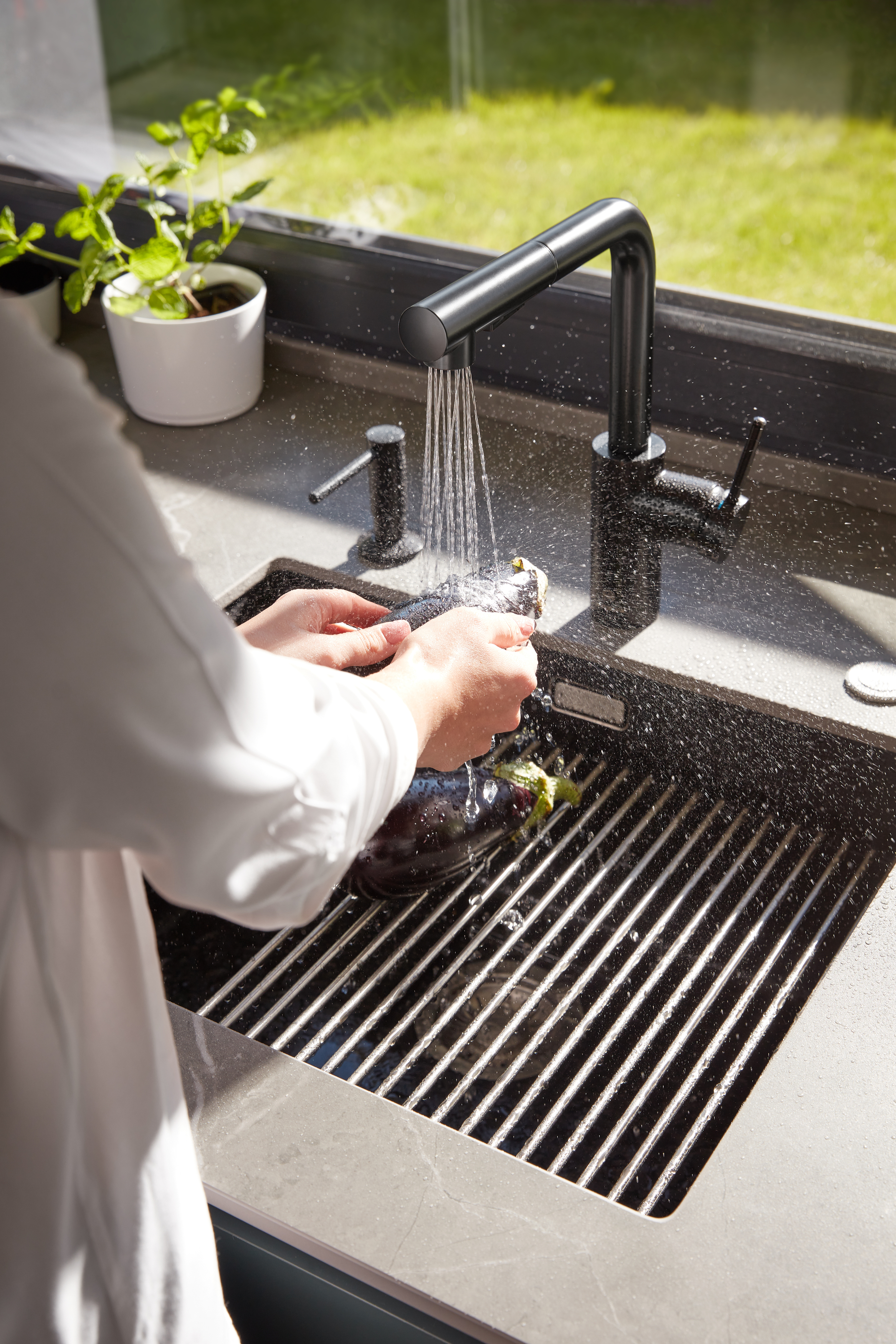 Ідеальний кухонний змішувач, перш за все, повинен бути зручним у повсякденному використанні - зона миття є найбільш часто використовуваним місцем на кухні. Тому в основі такого змішувача лежить висувний вилив і можливість перемикання типу струменя води. Наші змішувачі з нової колекції Duero мають обидві ці функції. Великою зручністю є знімний аератор (ключ для розбирання йде в комплекті відразу при покупці) і силіконові насадки, які легко миються. Змішувач для кухні KFA ARMATURA DUERO BASIC BLACK з висувним виливом 6623-110-81 може стати важливим елементом декору будь-якої кухні. Колекція доступна в двох колірних варіантах: матовий чорний і матова сталь.