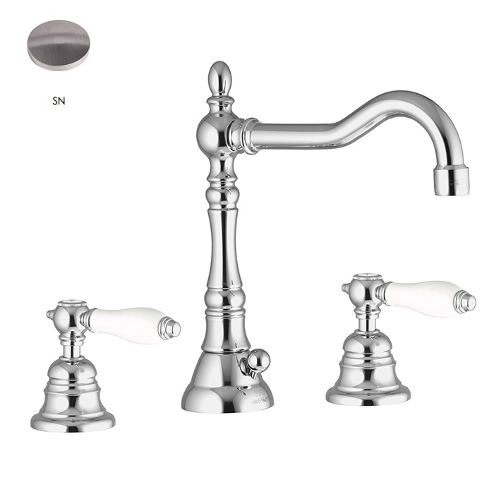 Змішувач для умивальника Fima Carlo Frattini Herend, на 3 отвори, вилив, що обертається, брашований нікель (F5401SN)