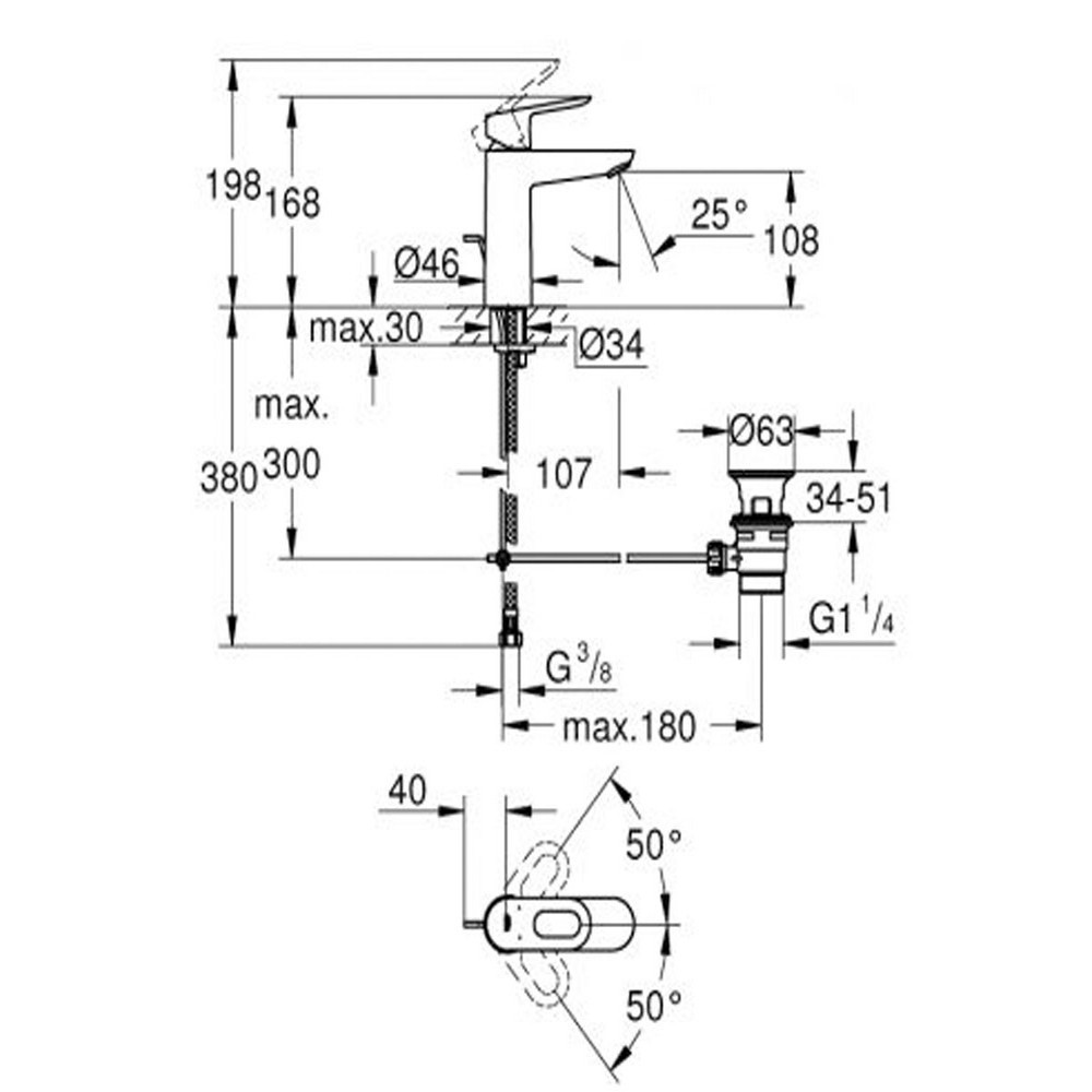 Особливість змішувача для умивальника Grohe BauLoop M-Size: