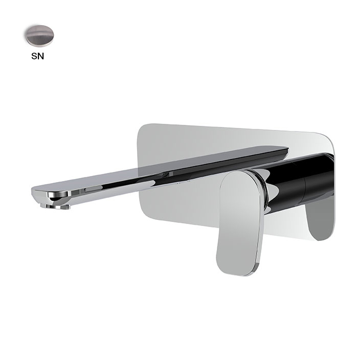 Змішувач для умивальника настінного монтажу Fima Flo з виливом 150 мм, броширований нікель (F3821X5SN)