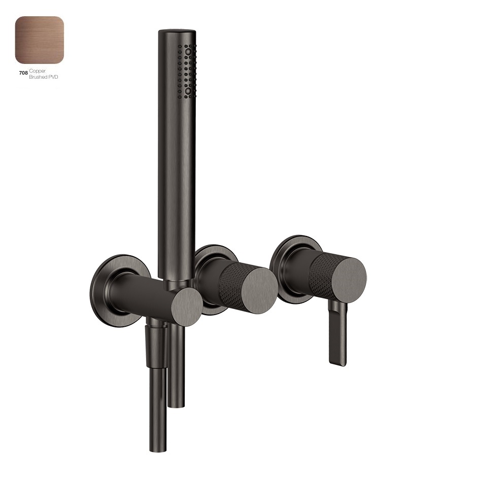 Особливості змішувача для ванни Gessi Inciso, на 2 виходи, ручний душ, зовнішня частина, Copper Bruched PVD (58345708)