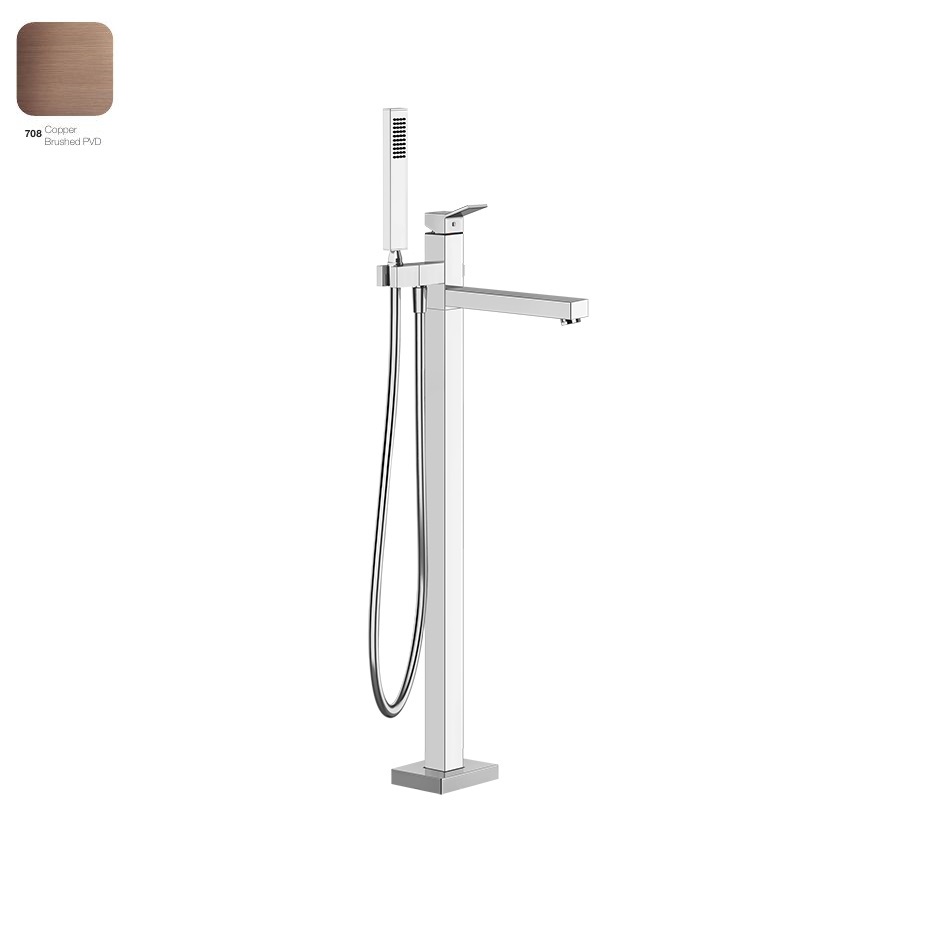 Змішувач для ванни Gessi Rettangolo K, підлоговий, з душовою лійкою, Copper Bruched PVD (53129708)