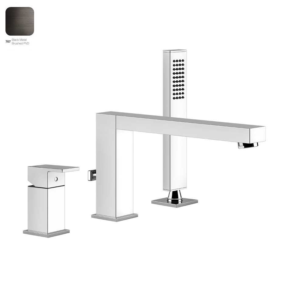 Особливості змішувача для ванни Gessi Rettangolo, на 3 отвори, вилив, Black Metal Bruched PVD (20037707)