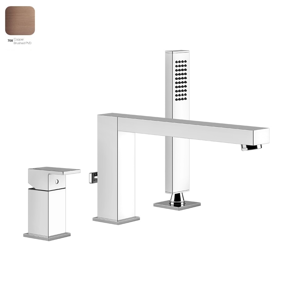 Змішувач для ванни Gessi Rettangolo, на 3 отвори, вилив, Copper Bruched PVD (20037708)