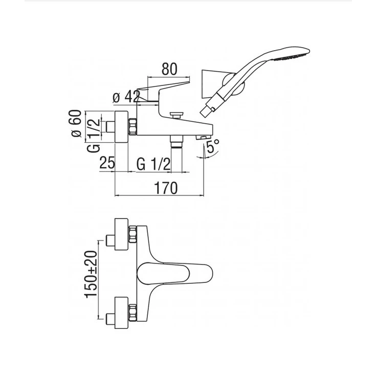 Змішувач для ванни NOBILI BLUES BS101110CR з лійкою для душу і тримачем Nobili