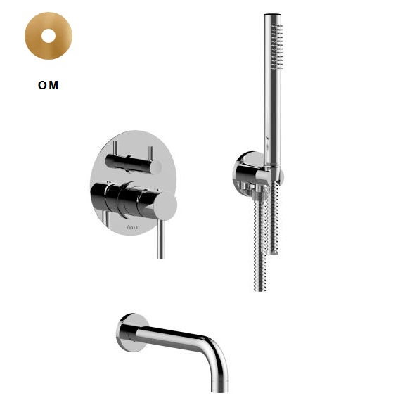 Змішувач для ванни прихованого монтажу із душовим комплектом Bongio ON зовнішня частина, золото матовий (68530OM0DPREU) зберігає первозданний зовнішній вигляд багато років завдяки сучасним способам обробки матеріалів, які відповідають за високу якість готових виробів.